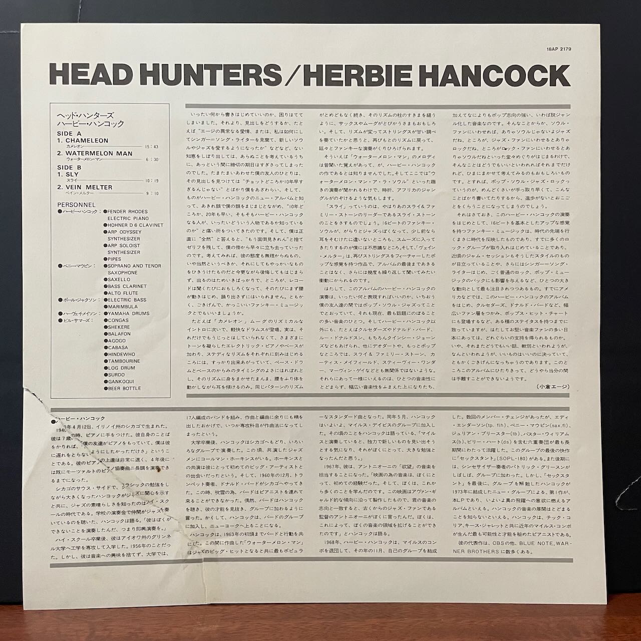 - 帯、ライナー付の当時の国内盤です。ライナーに破れ、テープ補修有り。