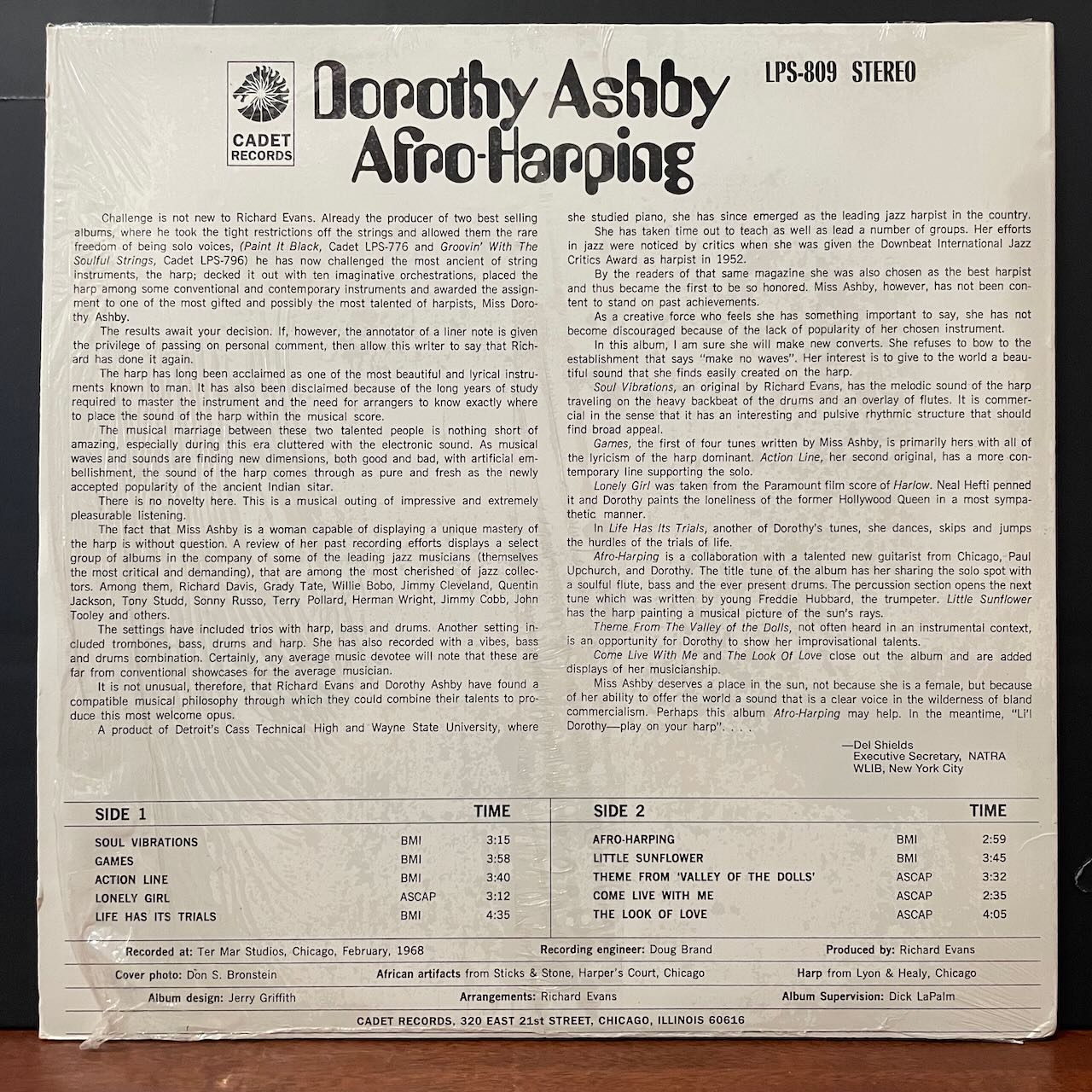 女性ハープ奏者DOROTHY ASHBYの68年作。本作はMARLENA SHAW, RAMSEY LEWIS等、CADETの人気作を手掛けた事で知られる巨匠RICHARD EVANSプロデュースでレア・グルーヴ〜ジャズ・ファンク好きに人気です。PETE ROCK & C.L. SMOOTH等にサンプリングされた「COME LIVE WITH ME」他「SOUL VIBRATIONS」「THE LOOK OF LOVE」のカバー等、捨て曲無し、アルバム通して最高です。