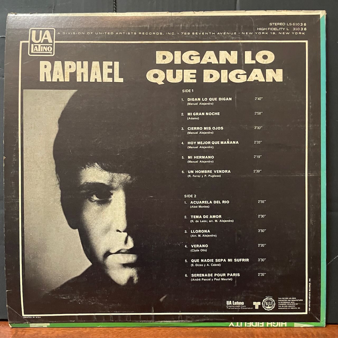 スペインの人気シンガーRAPHAELの68年作。「DIGAN LO QUE DIGAN」「LLORONA」等、サンプリングユースな曲を収録。ビートメイカーに人気のラテン歌謡です。