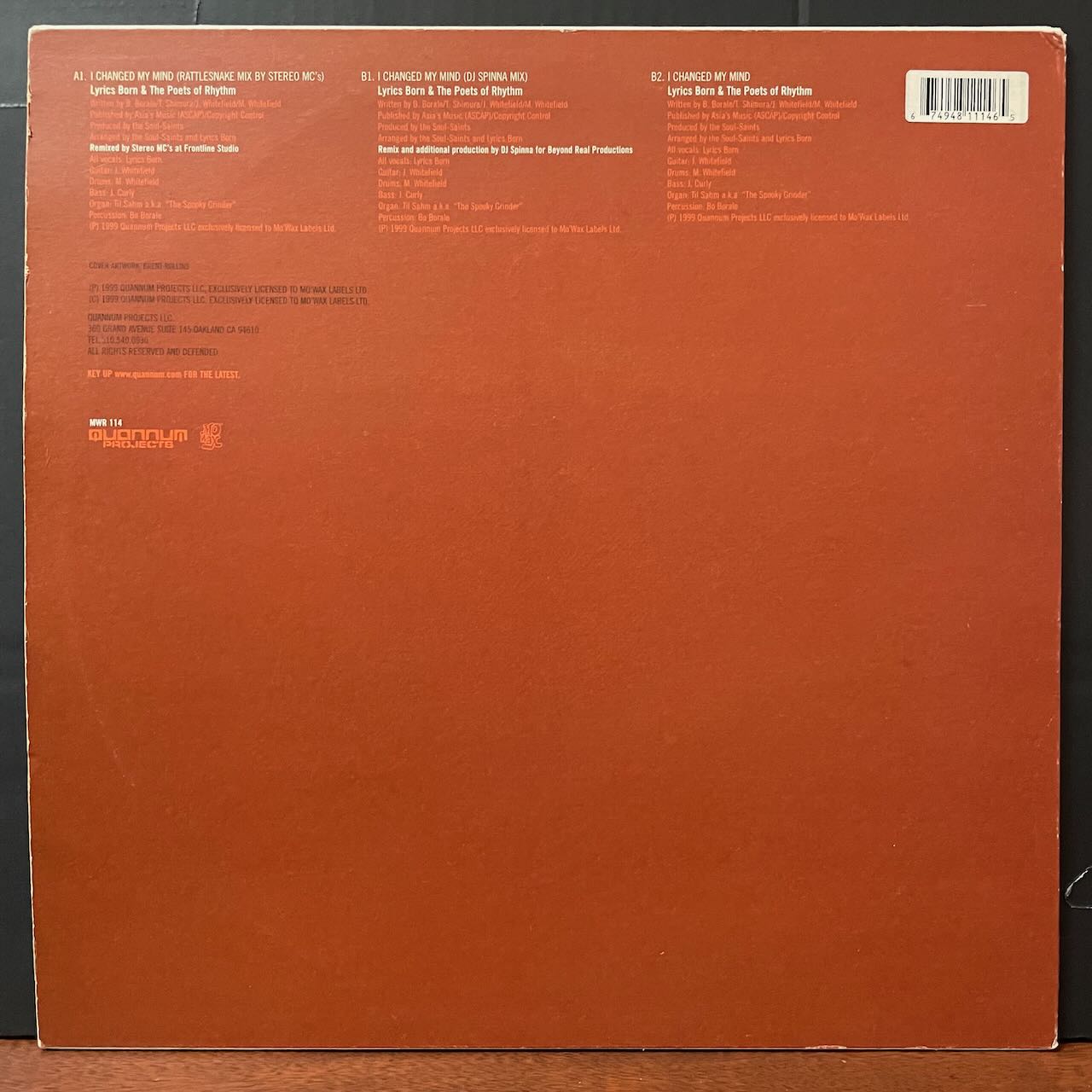 DJ SHADOW擁するQUANNUM MC'Sのシングル。DJ SPINNAによるREMIXが良いです。