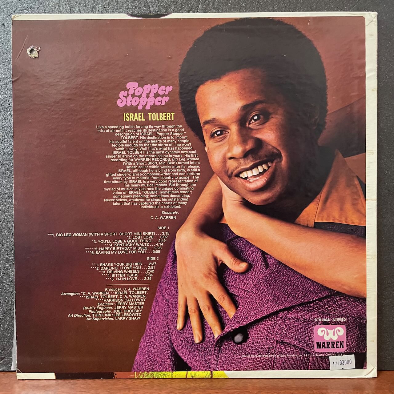 アラバマ出身の盲目シンガーISRAEL TOLBERTの唯一のアルバム。ブレイクビーツっぽいイントロで始まるファンキーソウル「HAPPY BIRTHDAY MISSES」同路線の「BIG LEG WOMAN (WITH A SHORT, SHORT MINI SKIRT) 」南部らしいサンプリングユースなバラード「SAVING MY LOVE FOR YOU」等、収録。