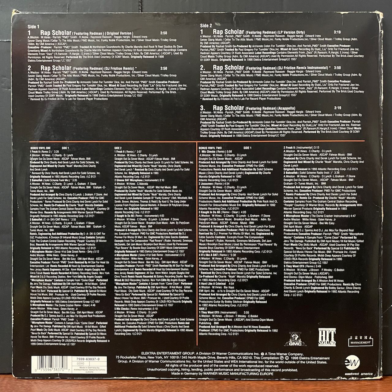 BRICK「DAZZ」使いのタイトル曲「RAP SCHOLAR」を始め、PETE ROCKのベストワークの一つ「JUSSUMEN (REMIX)」TLC「CREEP」と同ネタ使いの「THEY WANT EFX (REMIX)」AHMAD JAMAL使いの「MICROPHONE MASTER (THE DOME CRACKER REMIX DIRTY)」等、人気シングル曲をたっぷり収録したドイツ盤オンリーの3枚組仕様シングル。