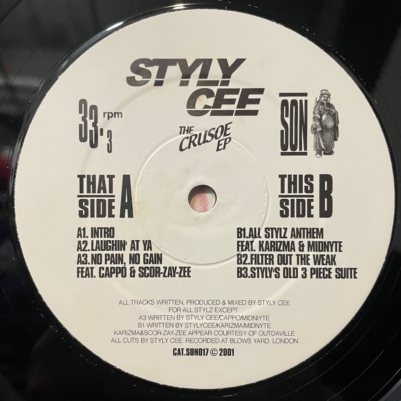 UKのアングラ・ヒップホップ・レーベルSON RECORDSを代表するDJ/プロデューサーSTYLY CEEの初期シングル。GREG NICEの声ネタ使いのキレの有るA-1「INTRO」他、全6曲+インスト&アカペラ盤の2枚組仕様です。