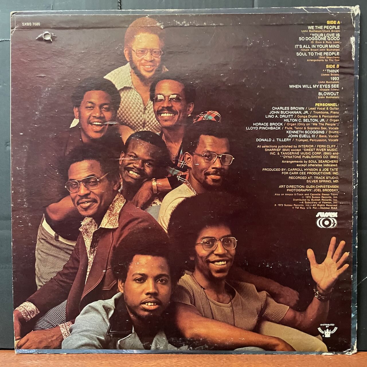 ワシントンDCのファンク・グループのSOUL SEARCHERSファースト・アルバム。タイトル曲「WE THE PEOPLE」はRARE GROOVE CLASSIC。ドラムブレイクで始まる「1993」LYN COLLINS「THINK」のカバーも良いです。盤の縁に軽度のヒートダメージ有りますが曲中はそれ程ノイズ感じないと思います。試聴ファイルでご確認ください。