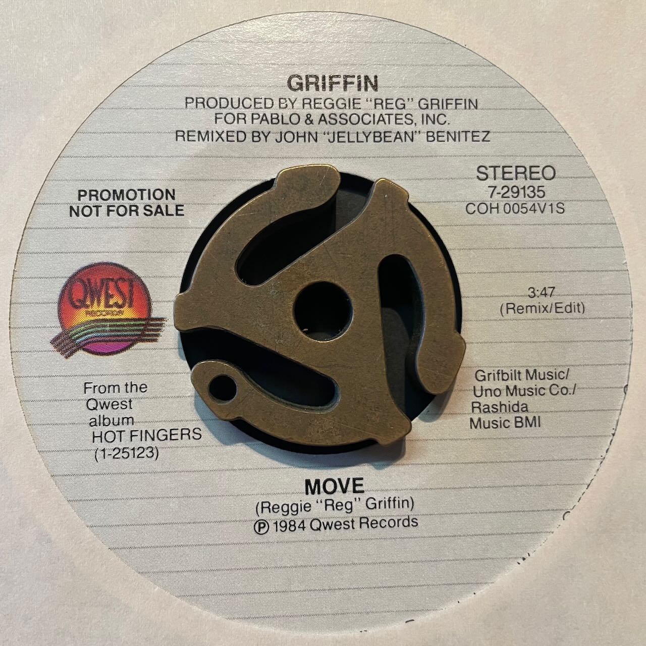 MANCHILD, REDD HOTT等で活動したREGGIE GRIFFINのシングル。JELLYBEAN REMIXの80'Sブギー。