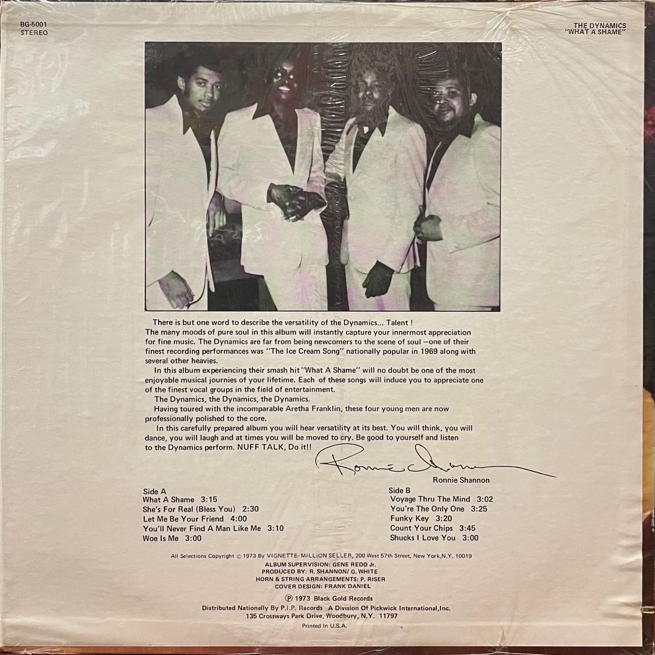 デトロイトのコーラス・グループDYNAMICSのセカンド・アルバム。甘茶ソウルのタイトル曲「WHAT A SHAME」クロスオーヴァー・ソウル「SHE'S FOR REAL (BLESS YOU)」サンプリングユースなファンキーなホーンがカッコいい「FUNKY KEY」等、全曲最高です