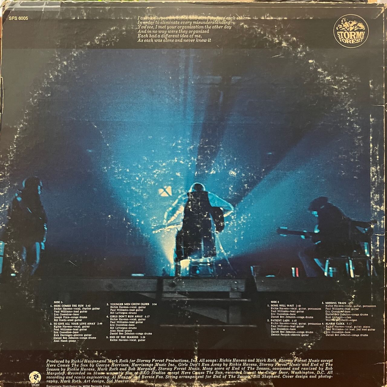 黒人フォーク・シンガーRICHIE HAVENSの70年作。コンガをフィーチャーした「HERE COMES THE SUN」のカバー、哀愁たっぷりの「MISSING TRAIN」等、収録。