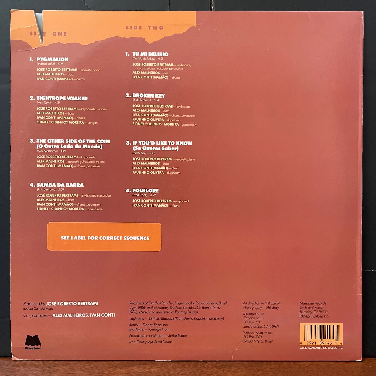 ブラジルのフュージョン・グループの86年作。メロウなタイトル曲「TIGHTROPE WALKER」ドラムブレイクで始まるスペイシーな「FOLKLORE」等、収録。