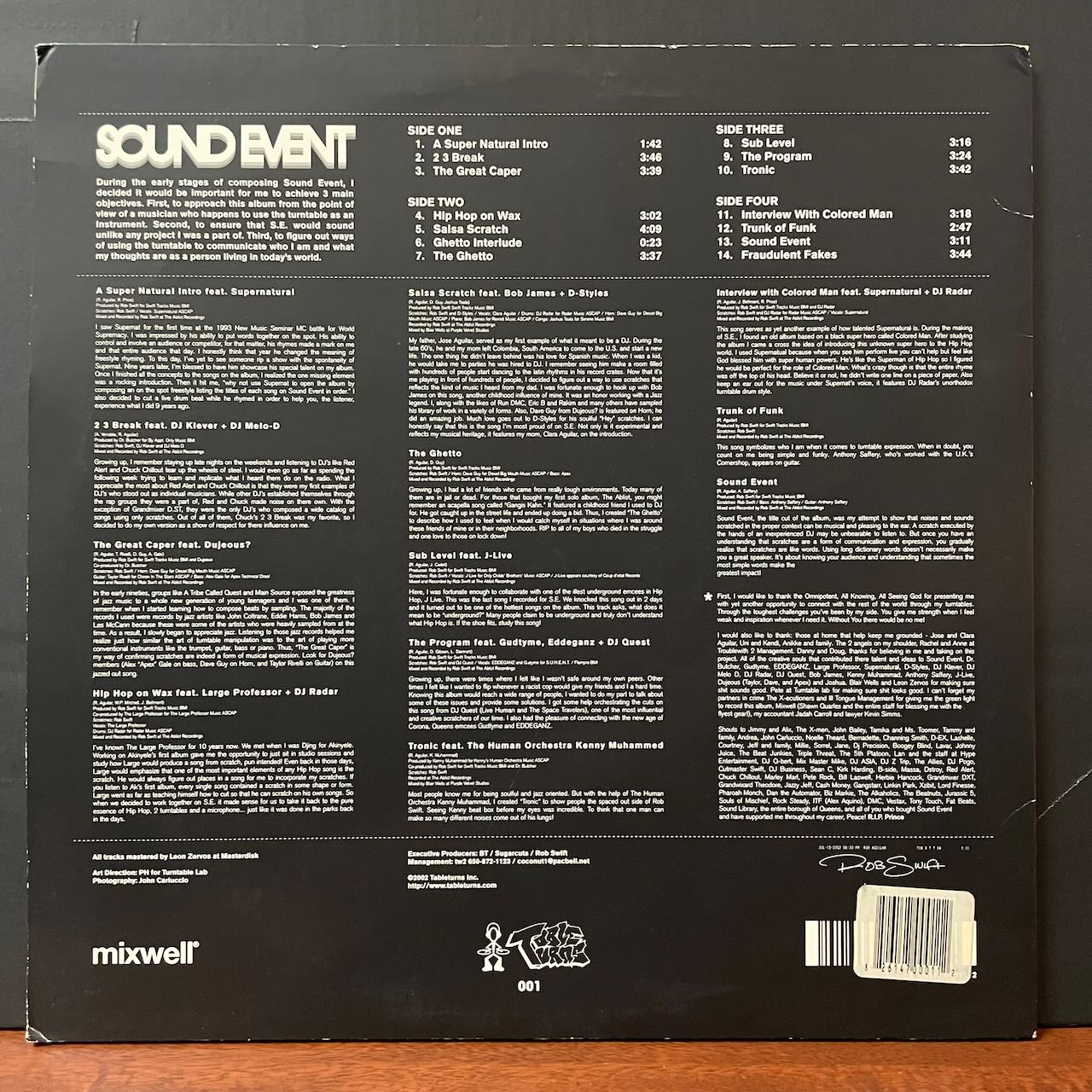 ターンテーブリストROB SWIFT の2002年作。LARGE PROFESSORをフィーチャーした「HIP HOP ON WAX」CLASSIC BREAK使いの「2 3 BREAK」サルサネタ使いのインスト・ヒッポホップ「SALSA SCRATCH」等、収録。