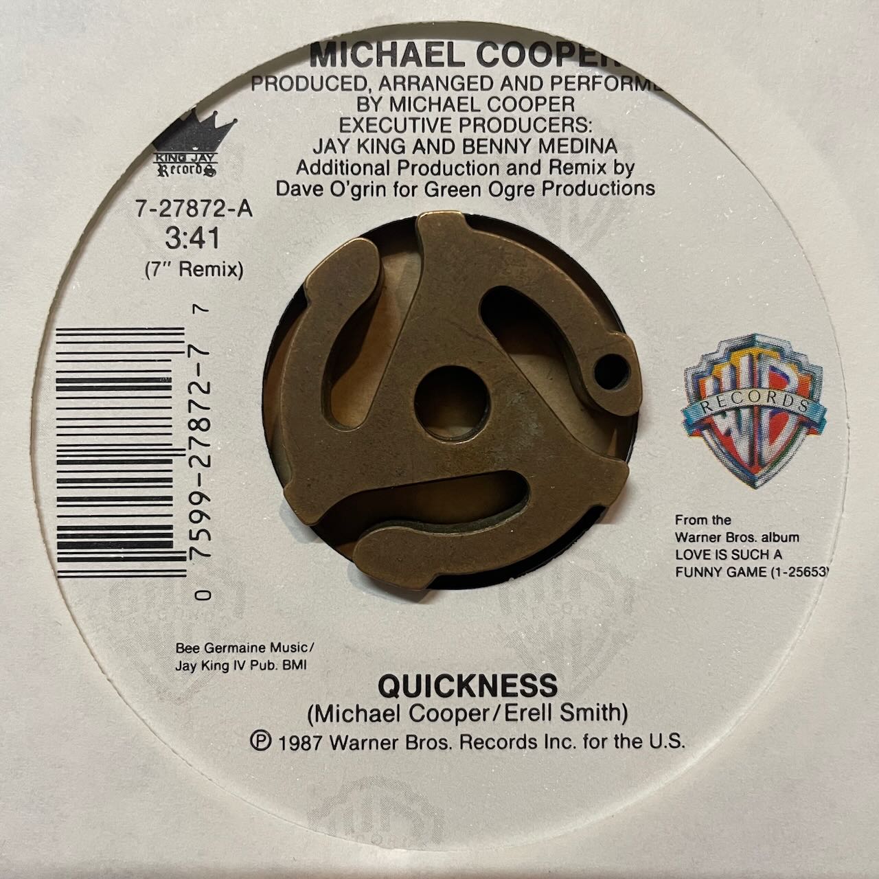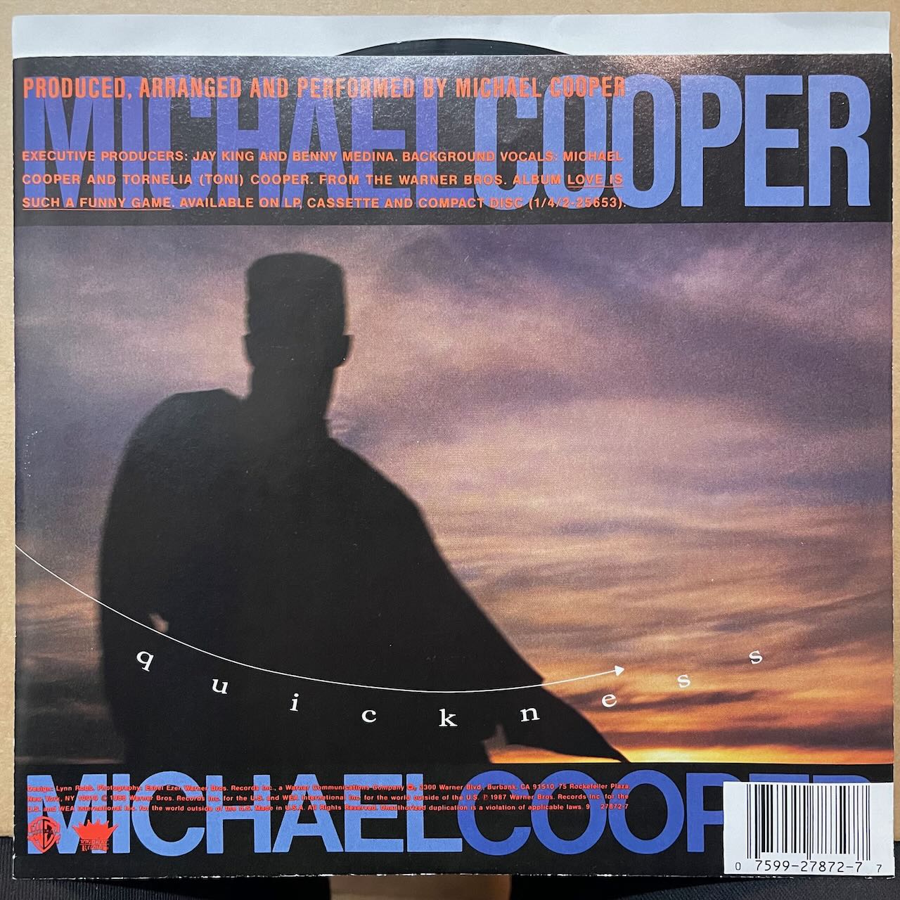 ジャケ付き7インチです。CON FUNK SHUNのリード・シンガーMICHAEL COOPERのファースト・ソロ・アルバムからのカット・シングル。90'S R&B前夜的なR&B。