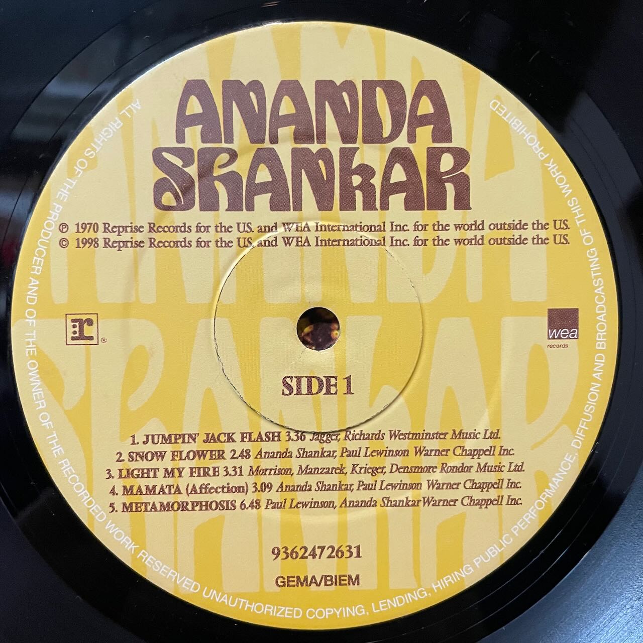 98年のEUリイシューです。シタール奏者ANANDA SHANKARのファンク〜レア・グルーヴ人気盤。「LIGHT MY FIRE」「JUMPIN' JACK FLASH」のナイスカバー他、中盤にドラムブレイクが入る「METAMORPHOSIS」等、カッコいいです。