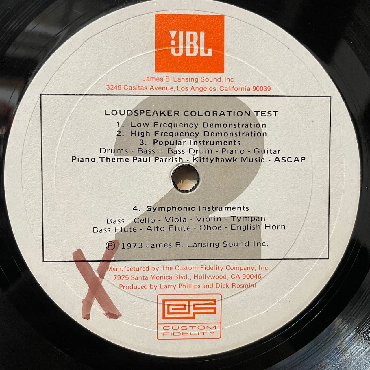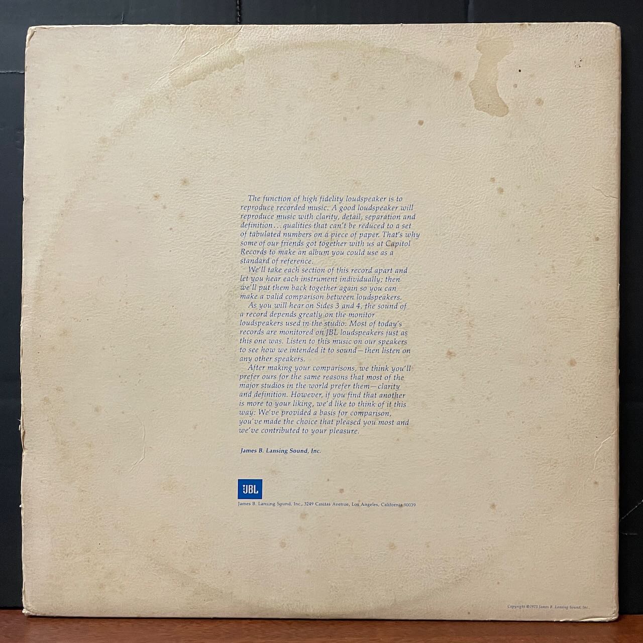 JBLのオーディオテスト用のレコード。「POPULAR INSTRUMENTS」にナイス・ドラムブレイク。