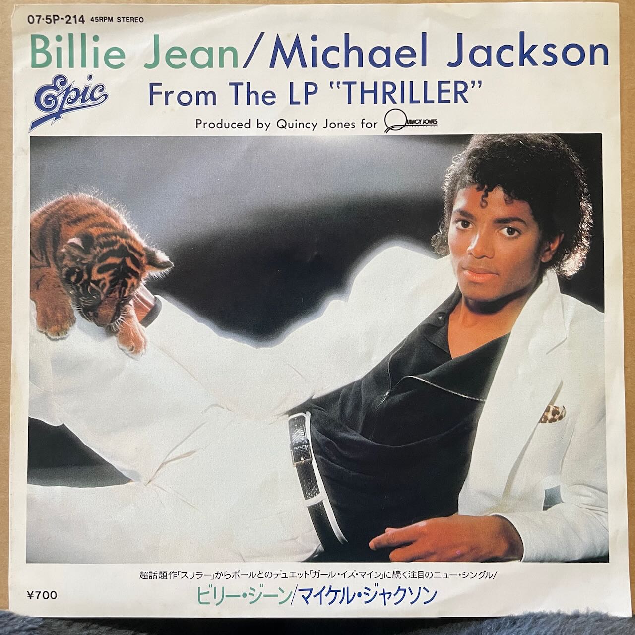 国内盤ジャケ付き7インチです。大ヒットアルバム「スリラー」からのカット。HIP HOP DJも二枚使い、数多くのアーチストにサンプリング〜カバーされたCLASSIC。US盤とはカップリング違いです。